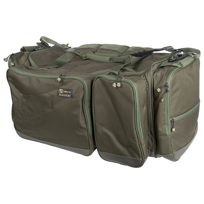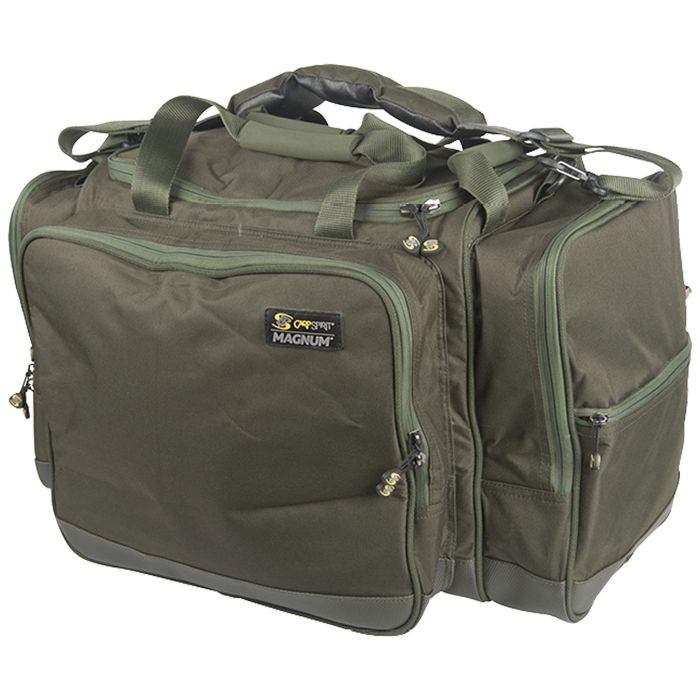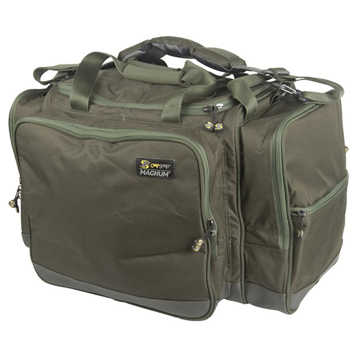 Groot hoofdvak, perfect voor kleding of grote accessoires. 2x gevoerde zijvakken met rits, en 2x eindvakken met snelle toegang, perfect voor accessoires. Volledig gevoerde voorvak is compatibel met grote Carp Spiritvisgerei dozen. Extra gevoerde voorzak op de XL-formaat. EVA handgrepen en volledig verstelbare EVA schouderriem. Versterkte basis voor zwaar gebruik.
