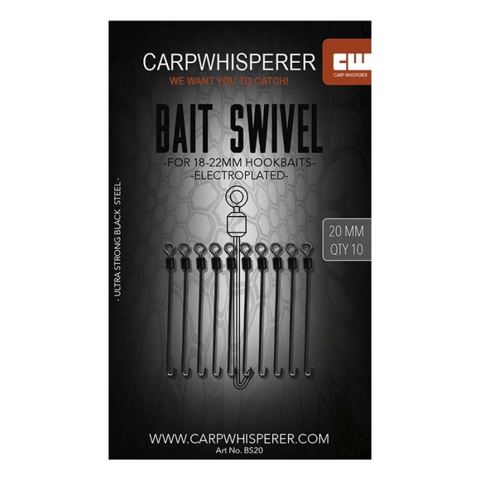 De Bait Swivel is speciaal ontwikkeld om de inhakingsefficiëntie van uw haaknaaldmontage sterk te verbeteren. De Bait Swivel drukt de punt van de haak als het ware in de onderlip van de karper. Het bevestigen van het haakaas is nog nooit zo eenvoudig geweest. Door simpelweg het haakaas op de wartel te drukken gevolgd door een haakkraal en/of krimpkous heeft u de perfecte bevestiging. Dit is de wartel om te gebruiken voor een bottom bait rig en Ronnie rig.