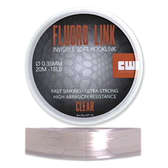 CW Fluoro Link is een speciaal ontworpen fluoro carbon vislijn voor vissers die graag met een onzichtbare haaklijn of leader vissen. Al met al is dit hooklink materiaal gemaakt van de beste kwaliteit fluoro carbon vislijn! Dit betekent; superieure knoopsterkte, hoge mate van slijtvastheid. Daarnaast heeft deze unieke fluoro-lijn een zekere mate van geheugen en niet te vergeten een goed absorberend vermogen om de vluchtpogingen van een karper tijdens het gevecht te verwerken. Daarnaast is dit het ideale hooklink materiaal om de beste stiff rigs en combi rigs te maken.