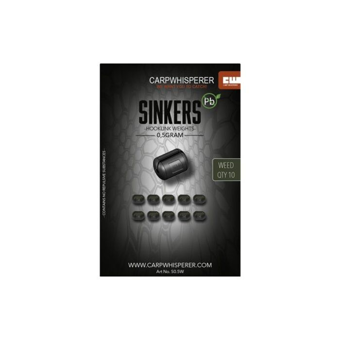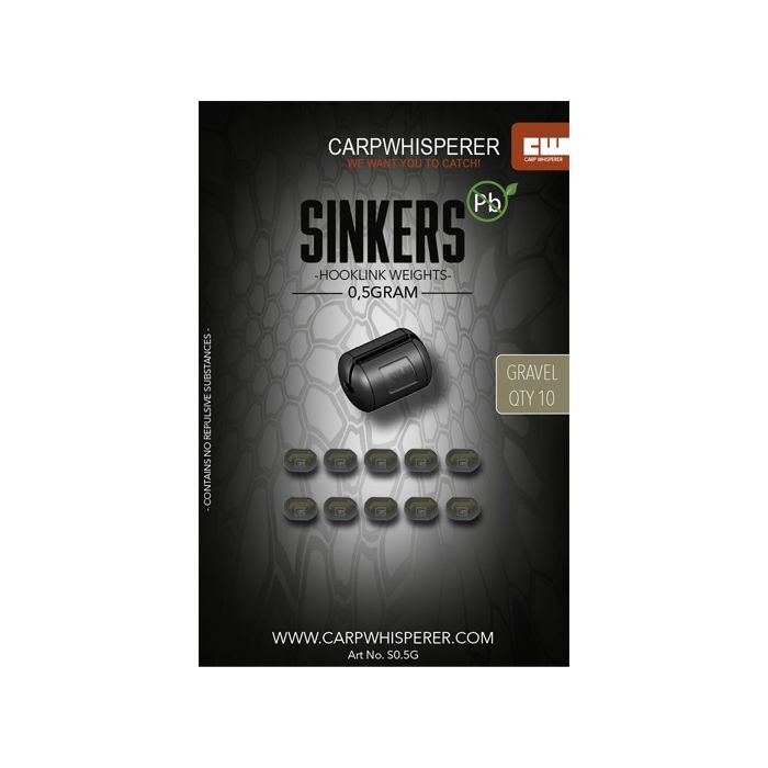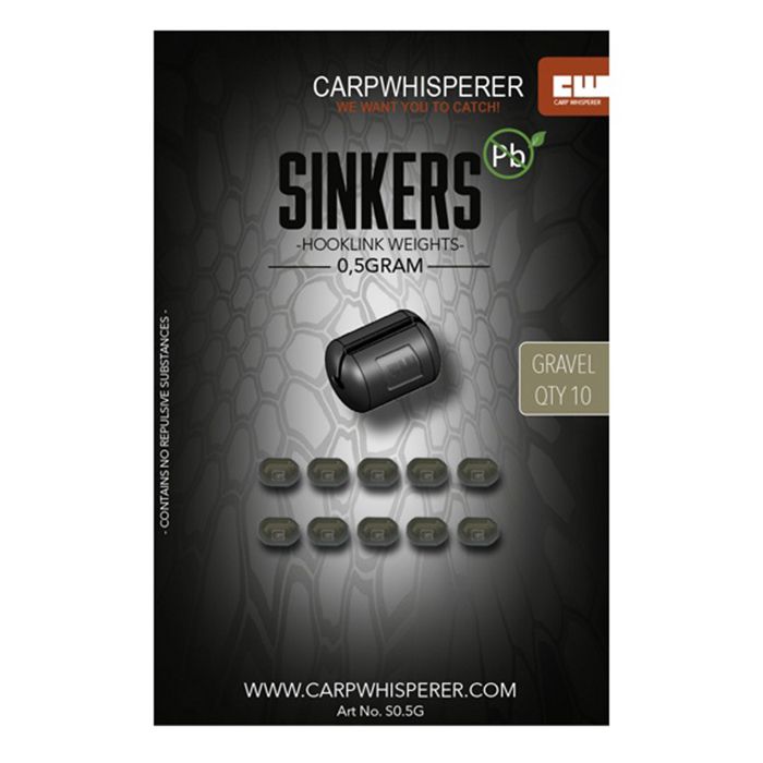 De Carp Whisperer sinkers of ook wel kwik wissel pop up gewichtjes genoemd zijn speciaal ontwikkeld voor het uitloden van drijvende boilies! Uiteraard zijn onze balancerende gewichten niet van lood maar van een milieuvriendelijk alternatief! Vergeet niet het rubber koord mee te bestellen om de sinkers aan de rig te bevestigen.