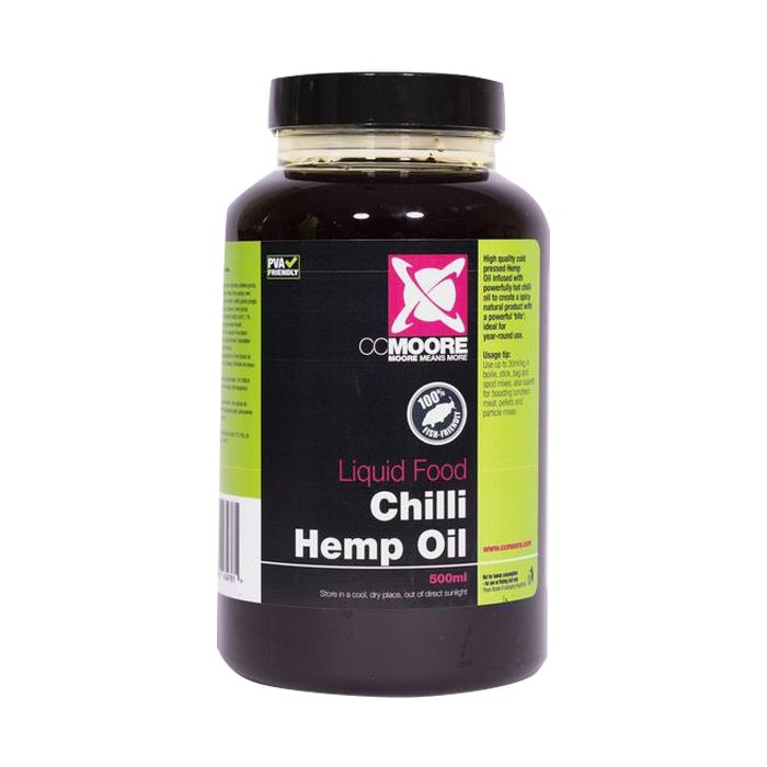 Dit is pure, koudgeperste hennep olie met super hete chilipeperzaad olie toegevoegd vol waardevolle energie, anti-oxidanten en geeft het een een krachtige pittige smaak aan je aas waardoor het zeer aantrekkelijk wordt om verschillende redenen. Het is het hele jaar door een uitstekende natuurlijke karper en barbeel attractant die uitstekend geschikt is voor het oppeppen en aromatiseren van boilies, partikels, pellets, los voer en haakaas. Omdat het op olie gebaseerd is, is het natuurlijk 100% PVA vriendelijk.