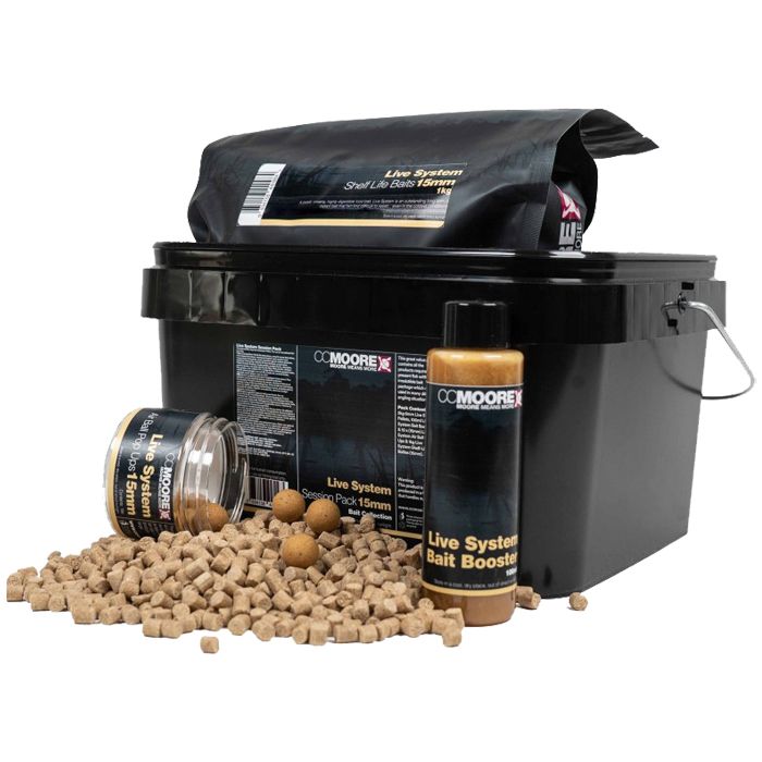 Het Live Systeem Sessie Pakket van CC Moore biedt u alles wat u nodig hebt voor een effectieve witvis seizoen. Het Pakket geeft u 1 kg Live Systeem 15mm houdbare boilies, 20 15mm Live Systeem airball pop ups, 100ml Live Systeem aas dip en 2kg Live Systeem 6mm pellets, allemaal geleverd in een exclusieve CCM Aas Emmer die een nuttig onderdeel van uw hengelsport zal blijven lang nadat u het laatste van het Live Systeem Sessie Pakket gebruikt heeft om uw nieuwe recordkarper te vangen, of om een aantal van uw favoriete witvis soorten mee te nemen naar uw haak.
