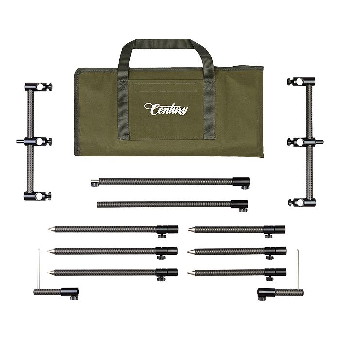 Truly versatile design that not only is a complete rod pod but also allows it to be fished as a stabiliser style set up or even as single sticks. The pod has a distinct Stealth appearance complimented with subtle Century branding and of course are manufactured by Century here in the UK, using high spec carbons and black anodised aluminium fittings, a real thing of beauty.
