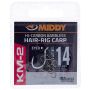 Der KM-2 ist ein außergewöhnlich starker Haken mit einer gebogenen Spitze sowie einem aufwärts gerichteten Öhr für das Herstellen von Haarmontagen. Das aufwärts gerichtete Öhr ermöglicht dabei den geradlinigen Austritt des Haars und sorgt so für ein besseres Hakverhalten. Die Haken eignen sich hervorragend für das befischen von Satzkarpfen, zum Beispiel an kommerziellen Gewässern. Eine Packung enthält zehn Haken.