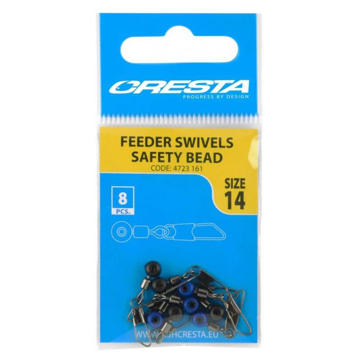 • Crest feeder swivels with safety bead are available in 2 sizes 14, and 12