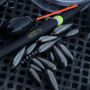 Deze zeer nauwkeurig gekalibreerde inline olivettes zijn voorzien van een zachte silicone tube, waardoor beschadigingen aan lijn en vervormingen van ondersteunende loodhagels worden voorkomen. De druppelvorm met het zwaartepunt naar beneden zorgt voor veel stabiliteit in de montage en controle over de aasaanbieding.
