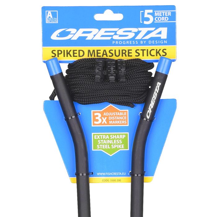 De Spiked Measure Sticks zijn de ideale manier om uw ingestelde visafstand te meten. De exacte afstand kan eenvoudig worden ingesteld door de lijn rond de stokken te wikkelen totdat de lijnclip is bereikt. Het bijgeleverde koord heeft een lengte van 5m en is voorzien van 3 schuivers voor een nauwkeurige meting. Beide stokken zijn voorzien van een stevige pin die gemakkelijk en stevig in elke ondergrond kan worden geplaatst. De lengte van 70 cm van de stok boven de pin zorgt ervoor dat de lijn bij het wikkelen boven elke begroeiing blijft. De gladde afwerking van de stokken en de plastic afdekknop zorgen ervoor dat de lijn gemakkelijk en zonder beschadigingen kan worden opgewikkeld.