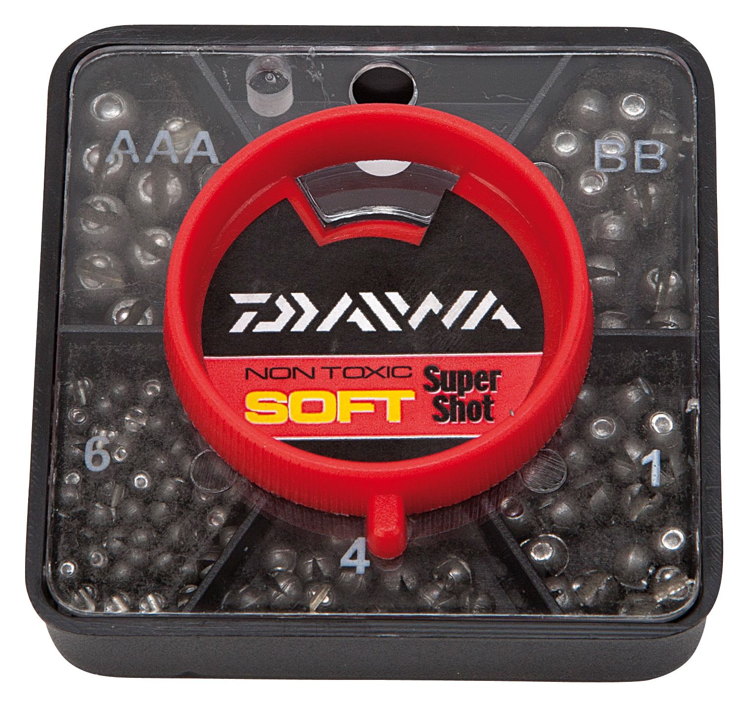 Daiwa Soft Super Shot. Ontwikkeld door Dinsmores is deze verzameling niet-giftige split-shot opmerkelijk zacht. Omdat er alleen vingerdruk nodig is om te sluiten, bevat elke opname ook een locatiehoek die uw vingernagel helpt bij het openen. Ontworpen om gemakkelijk over de lijn te schuiven.