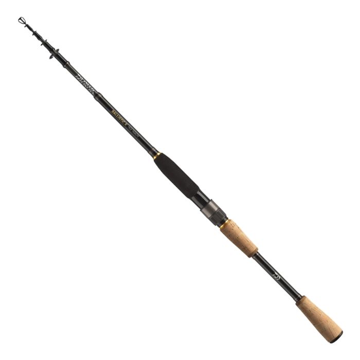 Due to the X45 carbon fiber design the single HVF segments are extremely lightweight, highly distortion-proof and fast – leading to perfectly balanced rods. The feeling with these rods is hard to distinguish from the one of premium detachable rods. The Ballistic X Tele spinning rods allow extraordinarily precise casts and transmit contact to the ground, lure action and softest taps instantly to the fisherman. The exclusive DAIWA Air Sensor reel seat is pleasant to handle, highly twist-resistant and supports the perfect transmission from the blank to the angler. The premium cork handle provides these classically designed rods with a special look.