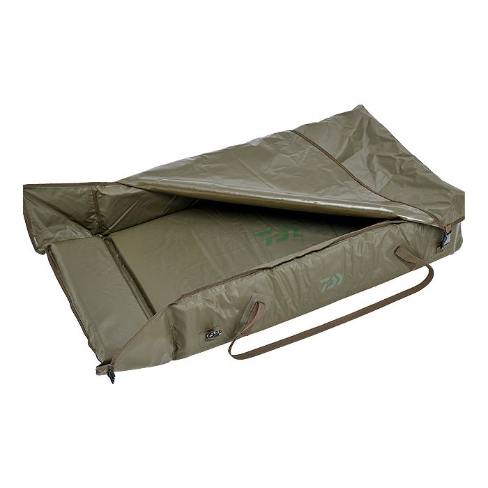 Large, waterproof, floating and padded unhooking mat for release in the water. The PVC material is easy to clean and does not absorb odours. The unhooking mat can be closed at the top to prevent the fish from jumping out. With two eyelets for secure fastening to the ground. Equipped with a long carrying handle for optimum transport on the bank.