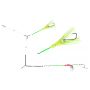 One lure is rigged straight above the lead, another follows the lead. The extra-long anti-tangle boom and the Glow tube prevent tangling of the rig during sinking down nearly completely. Perfect for fishing in great depths.
