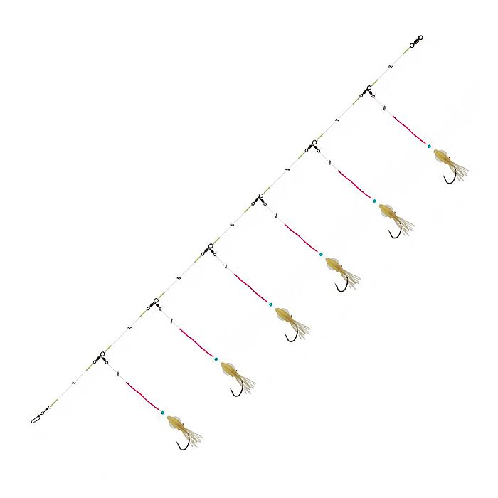 This high-end rig has been developed together with our team angler Horst Hennings for fishing for big redfish in northern Norway. The special rotation swivels at both sides and the knot protection as well as the tubes at the octopus prevent tangling of the rig during sinking in great depths and at strong currents. The thin, strong circle hooks find save grip in the redfish’s mouth and reduces losses during retrieving from great depths! Delivered with winder for an optimal storage of the rig after usage.