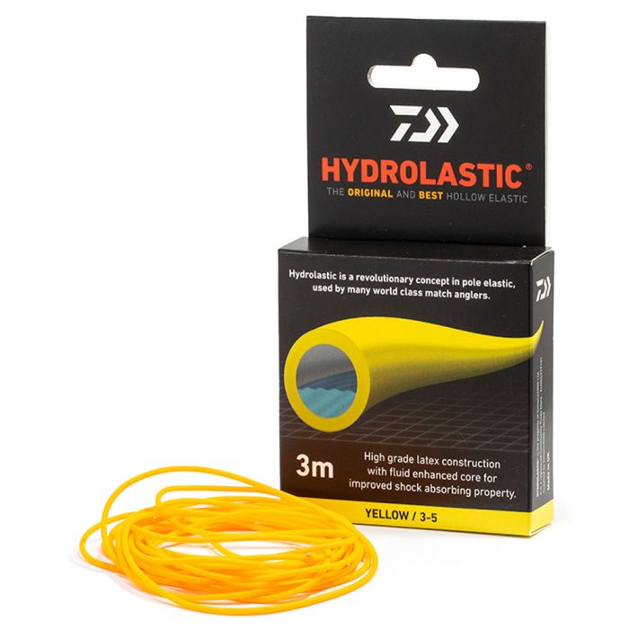 Daiwa wist dat het iets bijzonders was toen het de Hydrolastic ontwierp en daarom is het hele ontwerp van deze poolelastiek gepatenteerd. Daiwa Hydrolastic is niet alleen beschikbaar in meerdere beoordelingen, maar ook in meerdere kleuren. Zowel micro als standaard Hydrolastic zijn verkrijgbaar in zwart, blauw, geel, roze, wit, paars, oranje, bruin, rood en grijs. Hiermee kunt u het elastiek kiezen dat het beste past bij uw hengelstijl, de locatie die u wilt bereiken en de vis die u wilt laten landen.