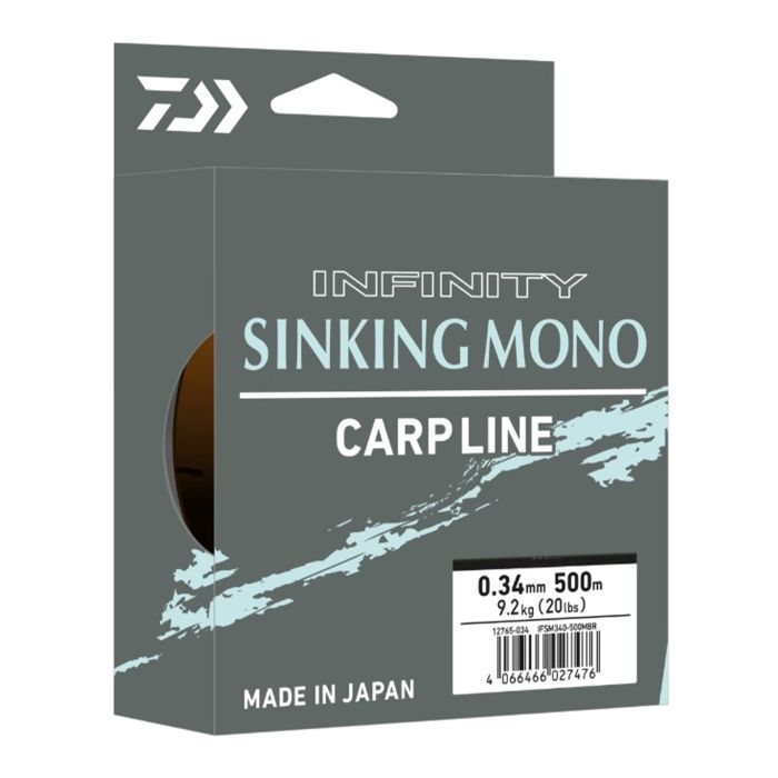 With this novel sinking Infinity carp line DAIWA offers a real innovation – thanks to its density of 1.2 this line is considerably heavier than water (approx. 0.99) and thus perfectly drops down right to the bottom. The new Material has been developed over a long period in our headquarter in Tokyo and is really unique regarding its features. Compared to sinking, stiff fluorocarbon material the new Infinity Sinking is supple and soft and offers a favorable stress-strain-behavior – perfect, to prevent losses during the fight and archive a good knot strength under load. Available in two colours.