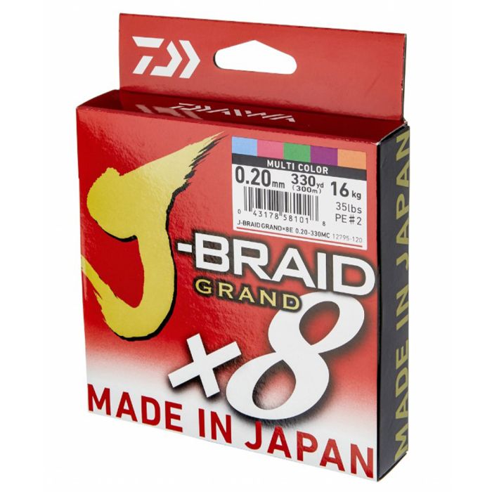 The J-Braid Grand X8 is the advanced version of the world-famous J-Braid X8. To offer even more safety at fishing and at the fight with the fish, the Grand X8 has been optimized regarding important details. The J-Braid Grand X8 fully convinces both at fishing in fresh water for perch, zander or pike and at sea fishing for cod, halibut & co. Compared to the established J-Braid X8 the Grand X8 features a somewhat tighter braid, which results in higher abrasion resistance as well as improved knot strength. By a special manufacturing process, where the J-Braid Grand X8 is stretched, the abrasion resistance and linear strength are furtherly increased. The J-Braid Grand X8 is very supple and somewhat more silent. Since this line is slightly stiffer than the J-Braid X8, it is especially well applicable at windy and difficult casting conditions. Available colours: light grey, chartreuse, multi-colour and blue
