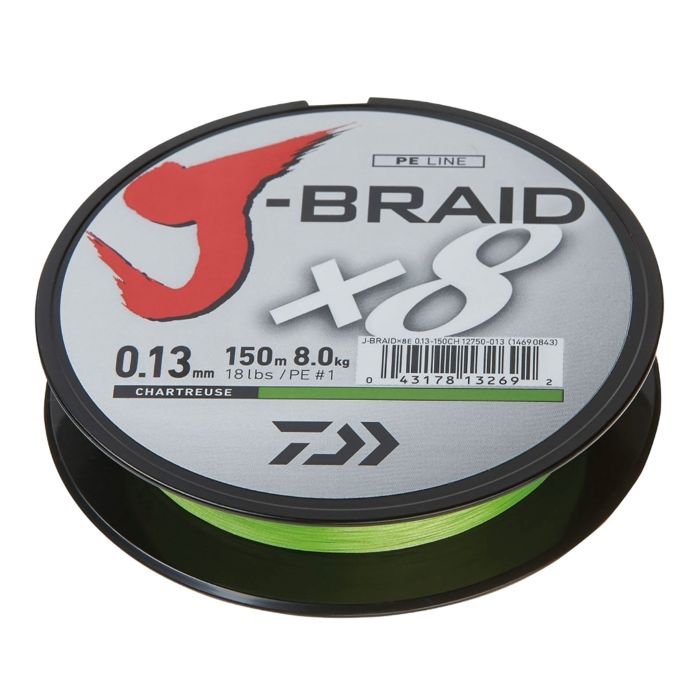 The J-Braid X8 from DAIWA is an exceptional fishing line, which is braided of 8 single strands and completely fulfills all requirements expected of a high-quality fishing line. Regardless if you want to fish for saltwater predators like halibut, cod and coalfish or aim to target perch or zander – with the new J-Braid you always ensure the proper contact to the fish. The J-Braid offers the matching diameter for every fishing technique, regardless if sea, river or lake – uncompromising strong and reliable. The J-Braid glides through the guides smoothly and silently, enabling long distances also with lightweight lures. Perfect for spinning and baitcasting reels! Unbelievable price-performance ratio! Available colors: dark green, chartreuse and multi-colour.