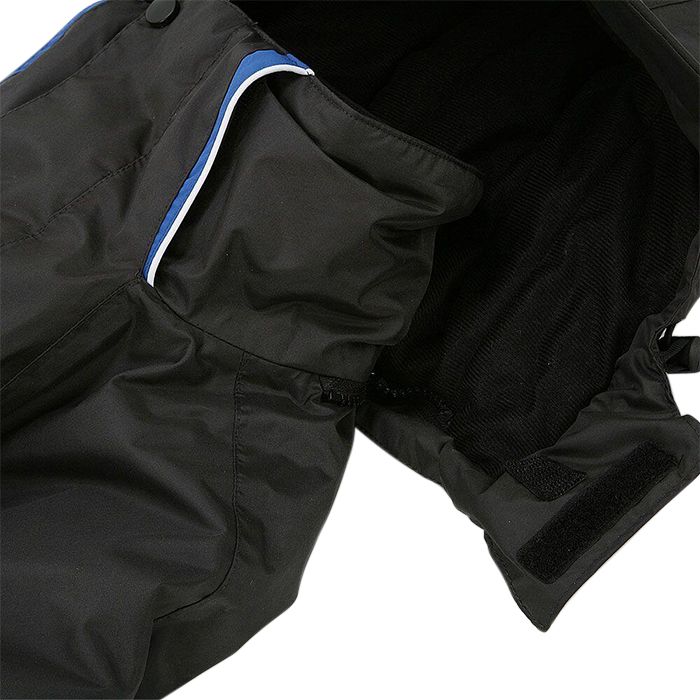 Het pak biedt twee binnenzakken en vijf buitenzakken. Bovendien heeft het pak ook twee polar fleece handenwarmers. Je hebt dus ook genoeg plekken om je belangrijkste materiaal en waardevolle spullen te bewaren, zoals je telefoon en portemonnee. Beschikbaar in verschillende maten van medium tot XXL zal er altijd een maat bij zitten die perfect past. Het pak wordt geleverd in het zwart, met blauwe en witte accenten.