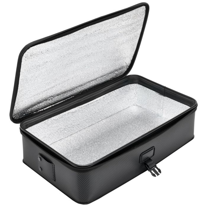 Dit slimme aaszaksysteem biedt twee foliegeïsoleerde compartimenten waarmee u uw aas gemakkelijk kunt beheren. Het eerste gedeelte is zeer ondiep en is het bovenste gedeelte van de tas. Dit gedeelte is perfect voor dichte aasboxen of kleine zakken met boiles. Dit gedeelte van de tas is ook volledig afneembaar om de toegang tot beide secties te vergemakkelijken. Dit wordt beveiligd door dubbele snelsluitingen en riemhouders. Dit ondiepe gedeelte meet 50cm x 30cm x 13,5cm.