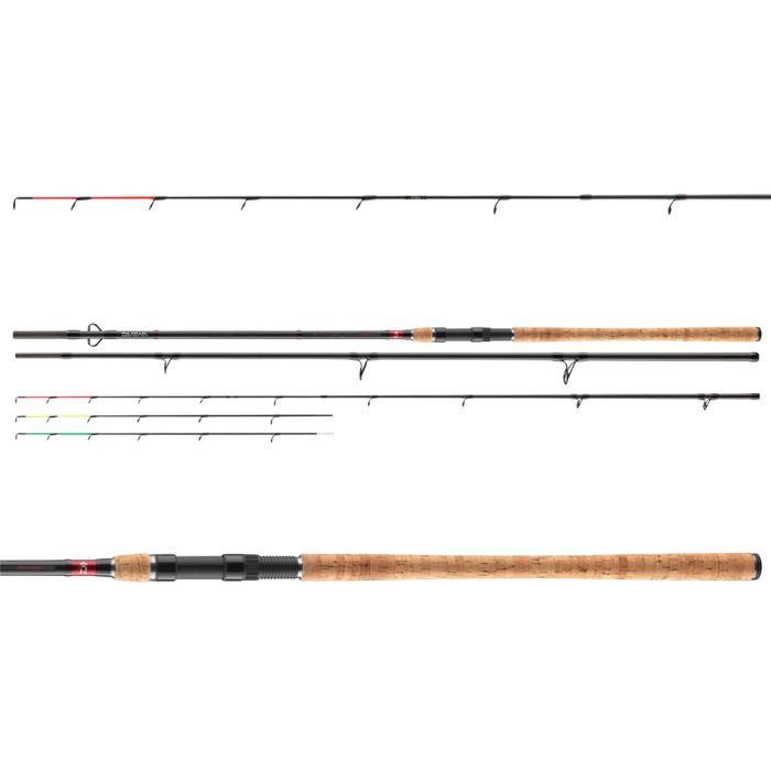 The lightweight and slim blanks of the Ninja X Method feeder rods enable very long and targeted casts thanks to the fast resilience. Accurate casts are extremely important at method feeder fishing, since the rig has to be placed precisely at the feeding spot to achieve the perfect bite frequency. During the fight the blanks open up to a semi parabolic action – headbutts and rapid flights of large coarse fish and carps are perfectly absorbed and losses of fish and rigs are prevented reliably. One glass fiber tip and two carbon fiber tips offer the opportunity to quickly adopt to the very recent conditions at the water.
