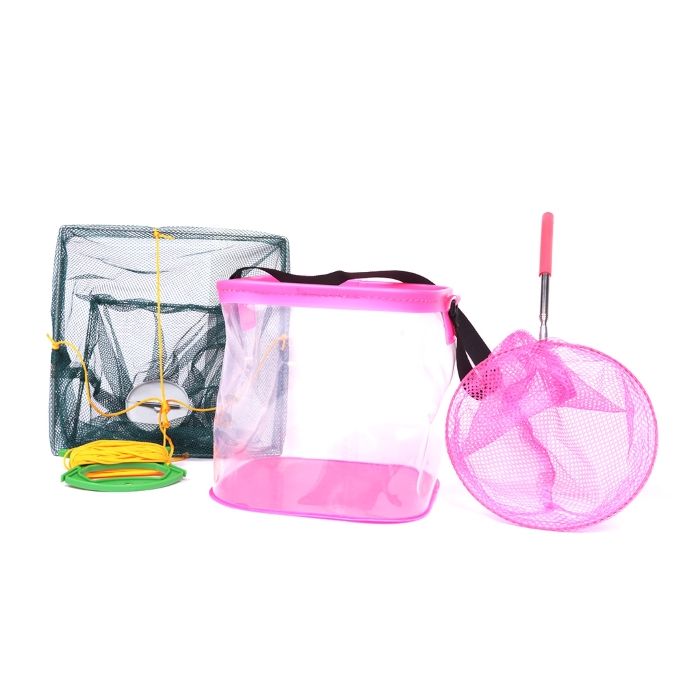 De vrolijke roze kleur van de emmer en de netten maakt deze set aantrekkelijk voor kinderen. Dit stimuleert hun interesse en enthousiasme voor het vissen en ontdekken van de natuur. Wanneer kinderen hun eigen visuitrusting hebben, voelen ze zich meer betrokken bij het proces en zijn ze sneller geneigd om actief deel te nemen aan buitenactiviteiten.