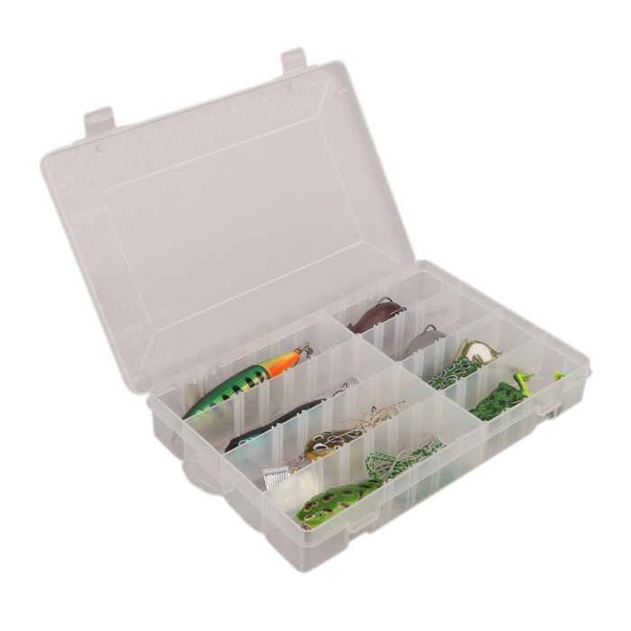 The Discover topwater Critters lure pack is an easy, convenient, and affordable way to start fishing for species such as Pike, Perch and Zander with topwater lures. Fishing with lures offers an exciting opportunity to target fish using this fun and energetic style of fishing, where staying mobile and casting in likely looking places will provide the best action and results. Choosing the right lure for the day can be a tricky task so we have selected the best patterns and colours to make the selection easier for the angler, we have packed the lures into a transparent lure box for safe and easy transport and storage. The Discover topwater critters Lure set offers 8 topwater lures with a choice of solid, jointed and articulated bodies that will entice even the smartest fish to attack them. All the Discover lures in this pack swim on the surface and create a lot of noise and buzz as they are retrieved, great for raising fish. Some of the lures also features a weedless design making them suitable for use in weedy lakes and around structure without snagging the lure. All the Discover lures are finished with high quality holographic paints and transfers and are fitted with ultra sharp treble hooks to ensure good hook holds.
