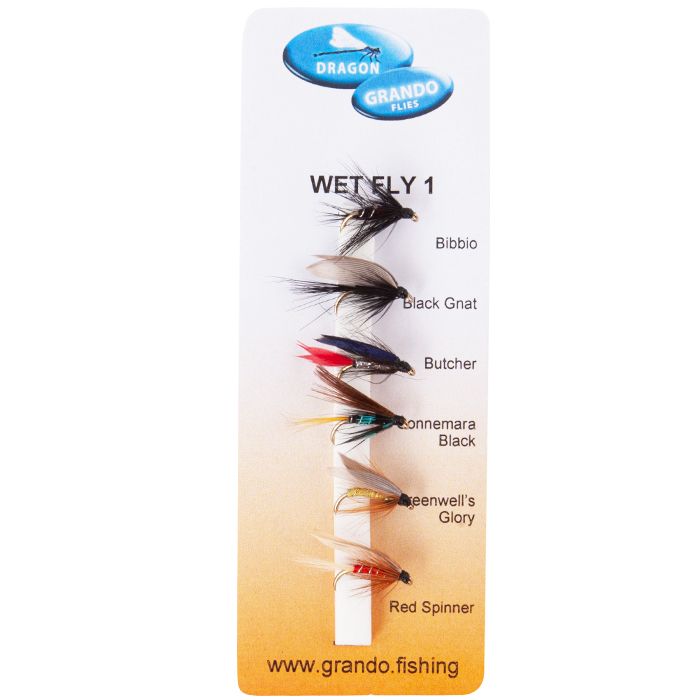 Inbegrepen in dit pakket van vissen vliegen kunstaas zijn Bibbio, Black Gnat, Butcher, Connemara Black, Greenwell's Glory & Red Spinner.