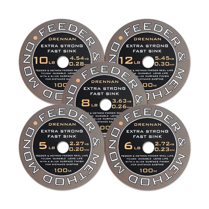 Drennan Feeder/Method Mono Lijn is een aantrekkelijke lichtbruine kleur en heeft verschillende eigenschappen waardoor het bijzonder geschikt is voor de eisen van Feeder-vissen. De lijn is beschikbaar op zowel 100m als 250m spoelen in trekkracht van 4lb, 5lb, 6lb, 8lb, 10lb en 12lb. Deze lijn is speciaal gecoat om het een gladde oppervlakteafwerking te geven, waardoor het een aantal unieke eigenschappen heeft die bij uitstek geschikt zijn voor deze manier van vissen. De coating maakt het perfect voor gieten op afstand, laat het gemakkelijk onder het oppervlak doorknippen en zorgt ervoor dat het snel wegzakt. Het is ook sterk, duurzaam en heeft een lange levensduur.