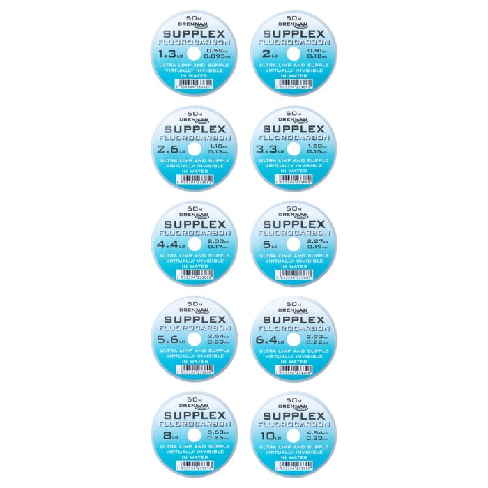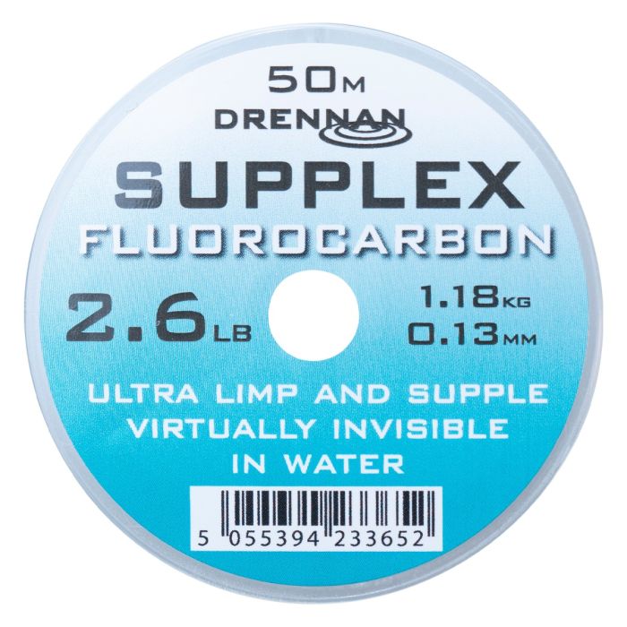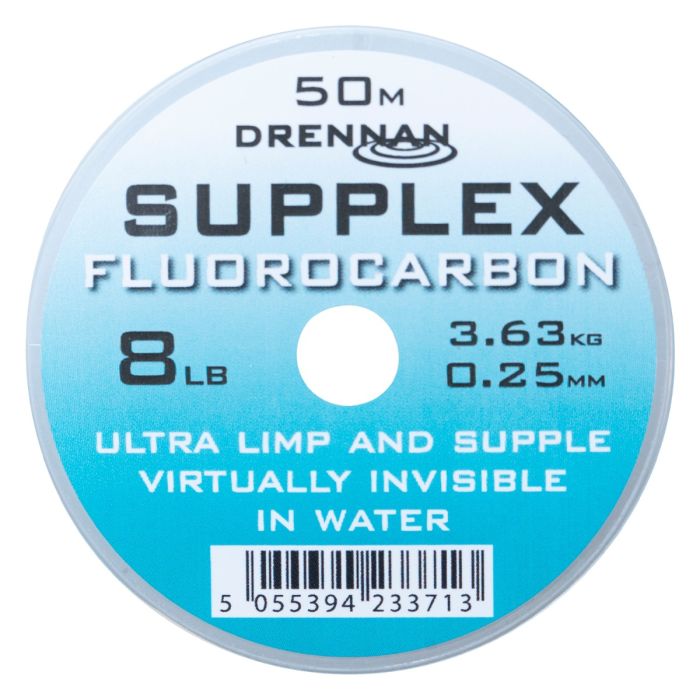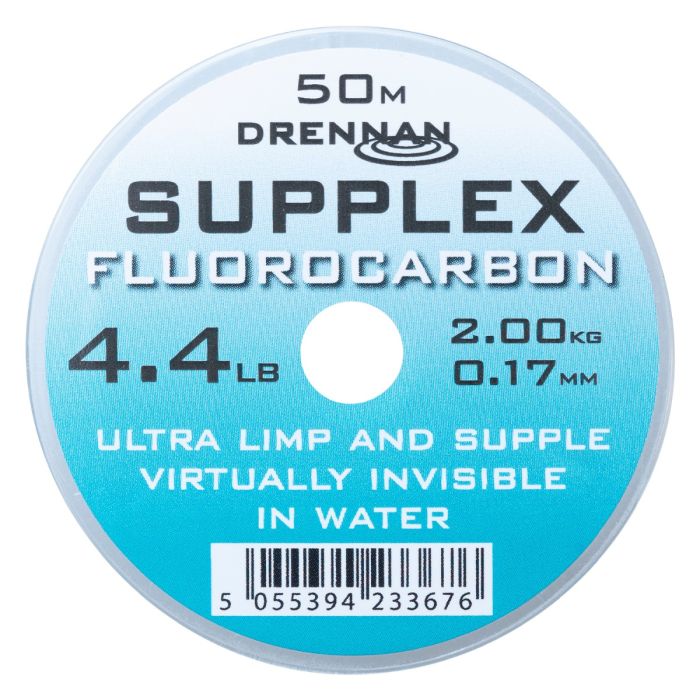 Supplex Fluorocarbon is verkrijgbaar in niet minder dan 12 nauwkeurige diameters en breukstammen, van 0,075 mm (0,9 lb) tot maximaal 0,30 mm (10 lb). Omdat het is gemaakt van 100% fluorocarbon, is het uitzonderlijk slijtvast, put het goed weg en degradeert het niet in zonlicht zoals standaard mono-blik. Het heeft ook een zeer vergelijkbare brekingsindex als water, waardoor het bijna onzichtbaar is in helder water. Fluorkoolwaterstof is ook minder geneigd om op te rollen in vergelijking met standaard mono, waardoor het een uitstekende keuze is voor wanneer u voortdurend uitwerpt en opraakt.