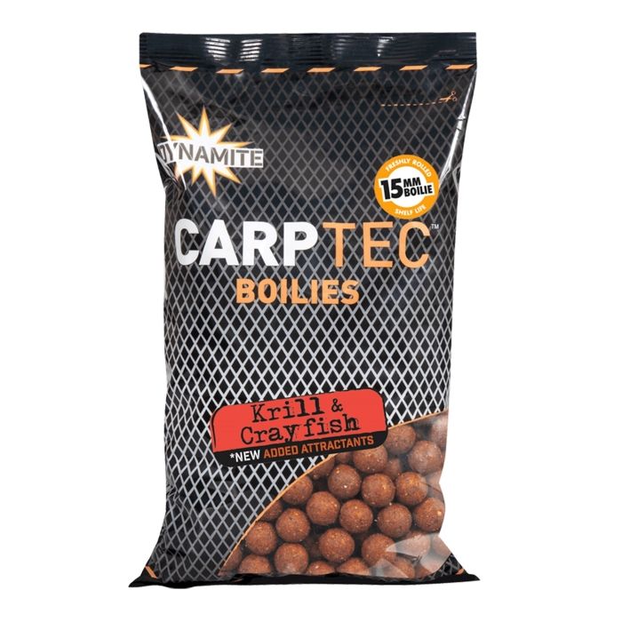 Carp-Tec Krill & Crayfish Boilies, aangeboden door de creatieve intelligentie van het merk Dynamite Bait, bieden een betaalbare, consistente, kwalitatieve boilie die perfect is voor nieuwe karpers, of situaties met veel voer, zoals een wandeling langs het seizoen langs een veelbelovende oever van de rivier, of een gevechtswedstrijd op een hard-gevreesde locatie. Deze boilies zijn oorspronkelijk ontwikkeld voor zware vechtpartijen in Europese wateren. Ze beschikken over een indrukwekkende basismix en een verbeterd aromasysteem dat al spectaculaire resultaten oplevert in het Verenigd Koninkrijk en het buitenland, waardoor deze boilies een veelbelovende mogelijkheid zijn voor karpers voor lifestyle die graag nieuwe landschappen en waterwegen ervaren , evenals de enthousiaste, concurrerende karpervisser.