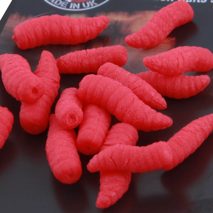 Onze grote, drijvende imitatie-maden kunnen op verschillende manieren worden gebruikt en zijn zeer effectief gebleken voor karper, zeelt en brasem. Met name karpervissers hebben het extra drijfvermogen dat ze bieden boven onze standaard maden gevonden, een echt voordeel bij het gebruik van grotere zwaardere gauge haken. Een presentatie die vooral opviel tijdens veldtesten, was een slip-D tuigje, een combinatie van een grote imitatie maden met verschillende echte om een levendig medusa-effect te produceren. Als je vist op bodempuin of onkruid, kan een opengevouwen of kritisch uitgebalanceerde haakaas worden verkregen door te koppelen met een haak van de juiste maat. Ook handig als kleine vis hinderlijk is, en voortdurend echte maden van de haak scheurt. Onze imitatie-maden werken het beste bij gebruik met echte maden, hetzij als losse voeding of in PVA-zakken. Weerstaat de aandacht van hinderlijke soorten, waaronder rivierkreeft. Pakket bevat 16 in 2 verschillende maten (15 en 20 mm lang).