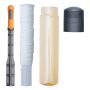 Er zijn drie verschillende maten van de EVA PVA Mesh Kit verkrijgbaar. De kleinste twee maten zijn respectievelijk 20 mm en 25 mm in diameter. Deze zijn allebei perfect voor de visser die zich met dynamietsticks wil richten, omdat ze je in staat stellen om een lange en dunne aaszak te maken. De grotere maat heeft een diameter van 32 mm, wat ideaal is voor het maken van grotere, lossere en meer afgeronde zakjes aas. Alle drie de maten worden geleverd met een duurzame polymeer-aasbuis, die is ontworpen met een wijd uitlopende bovenkant. Dit maakt het opvullen van je PVA-mesh aanzienlijk eenvoudiger en het zorgt ervoor dat je niet met lastige aanslagen hoeft te vechten terwijl je probeert klein materiaal in te stellen. De twee kleinere maten worden geleverd met een zuiger om het aas te helpen inpakken. Het heeft een rubberen handvat, voor een gemakkelijke grip, en is ingedeeld in 25 mm divisies. Dit zorgt ervoor dat u uniforme pakketten aas kunt produceren, overal tot 15 cm lang. De grotere 32 mm wordt geleverd met een flexibele gevormde trechter in plaats van een plunjer. Dit komt omdat je niet wilt dat deze bolletjes lokaas zo verdicht zijn. De trechter past netjes over de top van de aas en kan worden verwijderd om gemakkelijk op te bergen.