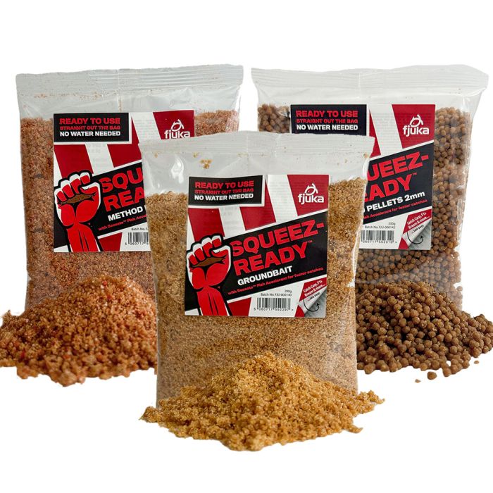 Klaar-voor-gebruik aas assortiment rechtstreeks uit de zak, geen water nodig. Het is nu onmogelijk voor vissers om hun mengsels verkeerd te krijgen, vooral in de grote Method feeder markt. Open Fjuka Squeez-ReadyTM en binnen enkele minuten vangt het vis, boordevol SensateTM Visversneller voor een veel snellere beet. Verkrijgbaar in Method Pellets 2mm, Method Mix (Method voer) en Grondvoer (allround voer).