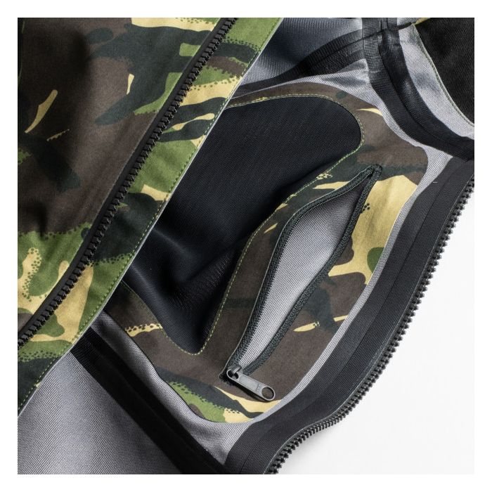 In de populaire DPM print biedt dit Fortis Marine Jas de ultieme waterdichte buitenlaag. Gemaakt van een 3-laags Triflex materiaal, volledig getapete constructie en met een waterdichtheid van 20.000 mm en een ademend vermogen van 20.000 mm, is deze jas bestand tegen de eisen van het vissen.
