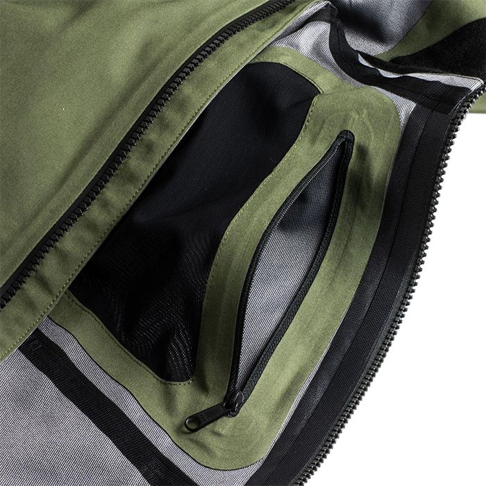 Ontworpen om volledig waterdicht, zeer ademend en ergonomisch te zijn, heeft dit jas een beschermende buitenlaag met bijzondere aandacht voor de snit van de jas. De mouwen hebben een ergonomische snit waardoor je armen beschermd blijven terwijl je buigt voor een worp. De technische taille rond de schouders zorgt ervoor dat de jas aan de achterkant niet omhoog komt als u omhoog reikt.