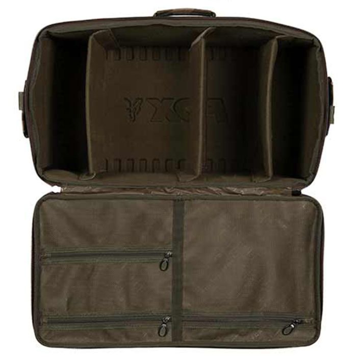 Hoe gebruik je de Fox Camolite Barrow Organiser? Het gebruik van de Barrow Organiser is eenvoudig en veelzijdig. Plaats de organiser op je barrow, waarbij hij zo is ontworpen dat hij perfect past zonder te verschuiven. Plaats je belangrijkste items in het grote hoofdvak en maak gebruik van de uitneembare scheidingswanden om verschillende secties te creëren voor bijvoorbeeld aas, tackleboxen, en andere benodigdheden. De zijvakken zijn ideaal voor sneltoegankelijke items, zodat je niet elke keer het hoofdvak hoeft te openen. Wanneer je de kruiwagen eenmaal hebt opgesteld op de visplek, kun je de organiser eenvoudig van de barrow tillen en naast je op de grond zetten, of je kunt hem aan de barrow laten hangen voor gemakkelijke toegang. Dankzij de gewatteerde schouderriem is de organiser ook comfortabel om los van de barrow mee te nemen.