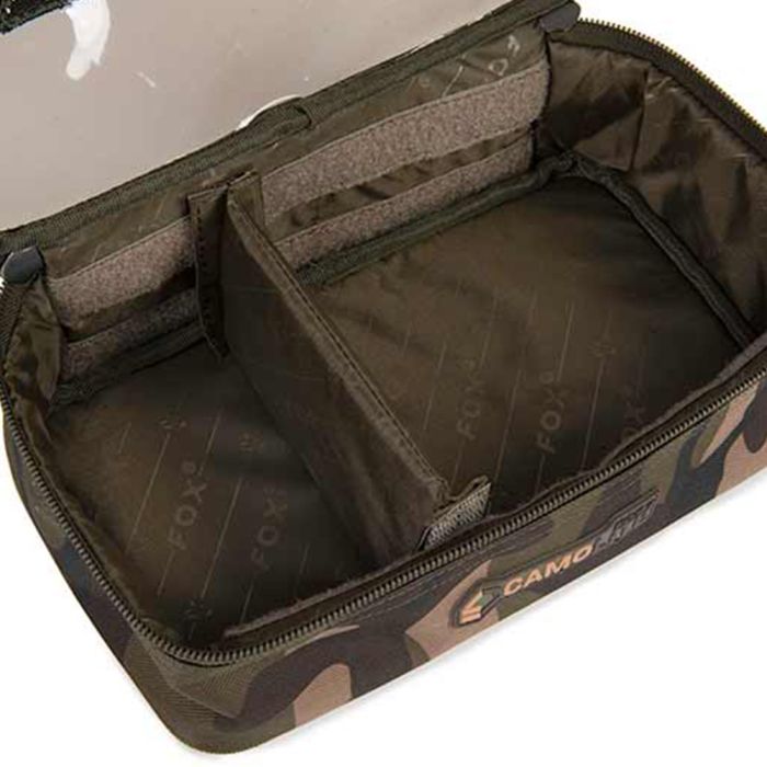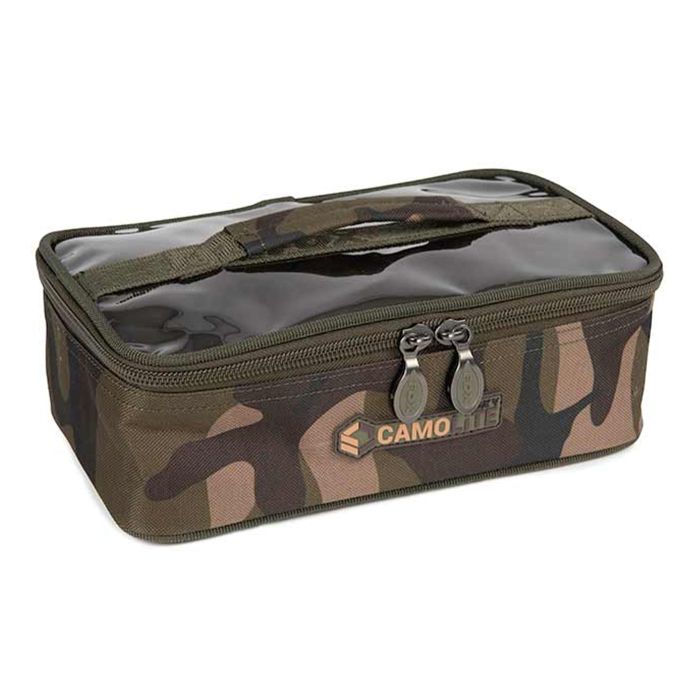 De Fox Camolite Large Accessory Tas is gemaakt van waterbestendig materiaal, wat een groot voordeel is voor vissers die onder alle weersomstandigheden willen vissen. De waterbestendige stof beschermt de inhoud van de tas tegen vocht en regen, waardoor je spullen droog blijven, zelfs tijdens regenachtige sessies. Dit is een essentieel kenmerk, omdat vocht schade kan veroorzaken aan gevoelige visaccessoires, en de Fox Camolite Tas helpt dit probleem te voorkomen.