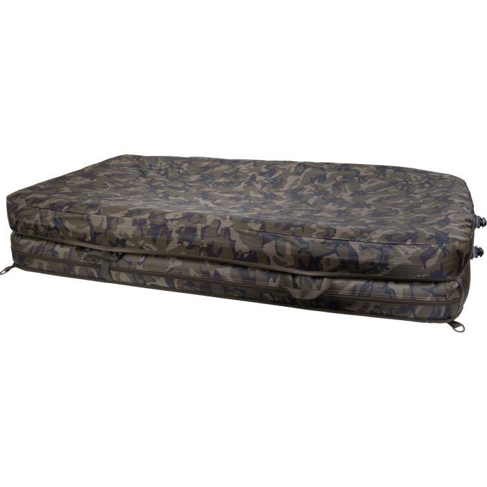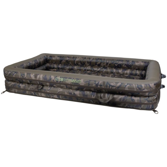 De Carpmaster Air Onthaakmat wordt gepresenteerd in een unieke Fox Camo print en wordt geleverd met een voetpomp en draagtas. Ongebruikelijk is dat de luchtkleppen perfect geplaatst zijn om gemakkelijk te kunnen verpakken, zodat de lucht snel naar buiten kan stromen als de mat is ingeklapt en opgerold voor transport.