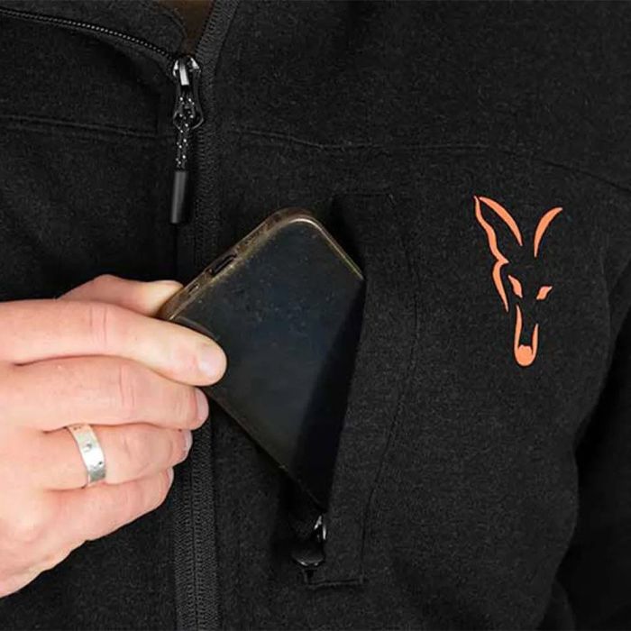 Fox Collection Black & Orange Sherpa Jacket, Black Marl Sherpa Fleece Lined hooded Jacket. Heavy Sherpa Fleece lining for ultimate warmth.