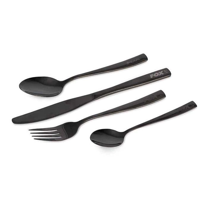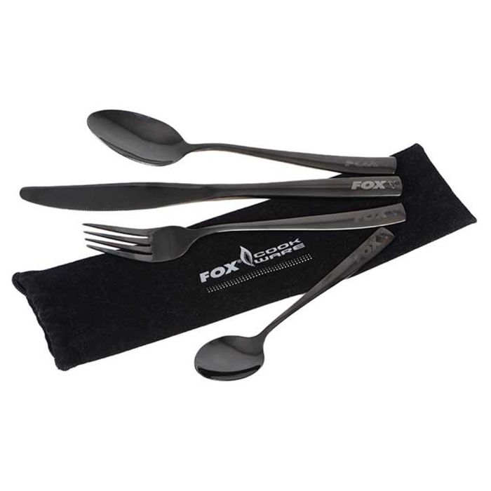 Includes Fox Branded Teaspoon, Knife, Fork & Dessert spoon.