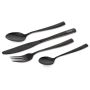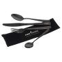 Black Stainless Steel Cutlery set in a draw string bag for storage.