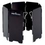 Met een lichtgewicht aluminium constructie, met zeven scharnierende panelen, kan dit windscherm van Fox's cookware effectief worden bevestigd aan elk oever terrein, met haringen om volledige stabiliteit te garanderen in alle omstandigheden.