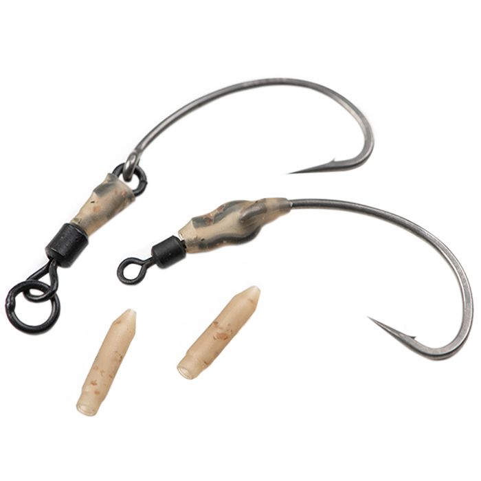 Fox Edges Ronnie Sleeves bieden een gemakkelijke manier om de wartel aan het oog van de haak te bevestigen bij Ronnie/Spinner rig presentaties. Ze zijn ontworpen om over de punt van de haak en langs de schacht te schuiven en dan netjes over het oog en de Snel Wissel Haak Wartel te schuiven om ze stevig op hun plaats te houden. De taps toelopende punt zorgt voor een nette montage en de sleeve kan hergebruikt worden, waardoor snel van haak gewisseld kan worden zonder gebruik te maken van krimpkous.