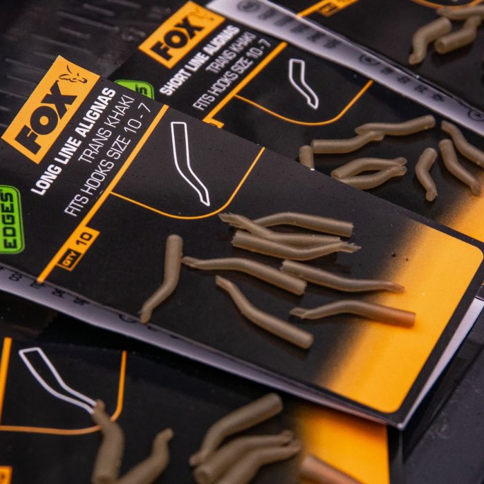 Hetzelfde ontwerp als onze Trans Khaki Line Alignas maar met het extra voordeel dat ze gemaakt zijn van tungsten voor extra gewicht. Probleemloze oplossing voor het creëren van de perfecte lijnuitlijn presentatie. Geen krimpkous meer nodig. Schuif de Aligna over de haaklijn en over het oog van de haak (gebruik de Edges Splijt Naald om de onderlijn aan te brengen). Het verlengt de haak in een hoek, waardoor hij beter in de bek van de karper blijft hangen. Verkrijgbaar in een lange en een korte versie. Beide versies verkrijgbaar in twee maten: Een voor haakmaten van 10-7 en een voor haakmaten van 6-1. 8 per pakje.