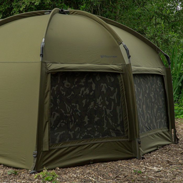Wij introduceren een gloednieuwe reeks Fox bivvies die de viswereld stormenderhand zullen veroveren! De Frontier bivvies zijn de afgelopen 5 jaar zorgvuldig ontwikkeld en geen middel is onbeproefd gelaten om de ultieme bivvy voor sportvissers te produceren. Het unieke Easy Tension System (ETS) Boss, waarvoor patent is aangevraagd, biedt een supersnelle opbouw en afbraak van deze Bivvy, terwijl de verbeterde vorm van het aluminium frame ervoor zorgt dat je meer bruikbare ruimte en hoofdruimte hebt dan ooit tevoren bij bivvies van dit type. Gebruik makend van de altijd betrouwbare Ven-Tec stof en gestyled in Khaki met Camo mesh ventilatieopeningen zijn deze bivvies ongelooflijk betrouwbaar en zien er echt uit als een huis. Zie hierboven voor alle kenmerken en specificaties.