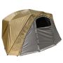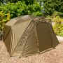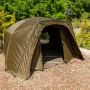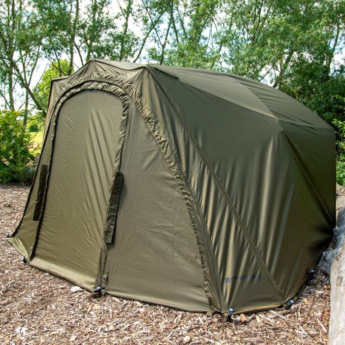 Fox Frontier Lite Extending Winter Wrap, Creates an extended peak and dual skin protection for your Frontier Lite. Reduces condensation and provides better insulation. Khaki coloured 10,000mm hydrostatic head polyester fabric. Full front zip to allow a Frontier Lite infill panel to be zipped in and create a complete Extending. Angled extension arms to give increased headroom at front. Supplied with groundsheet extension and 9 pegs in a carry bag.