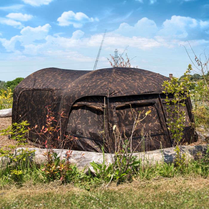 De Fox Frontier X Camo Deluxe Extension is uitgerust met ventilatiepanelen die zorgen voor een optimale luchtcirculatie. Dit helpt condensvorming te verminderen en houdt de binnenruimte fris en aangenaam. Goede ventilatie is essentieel tijdens warmere dagen, omdat het helpt om de temperatuur te reguleren en een benauwde sfeer in de shelter voorkomt.