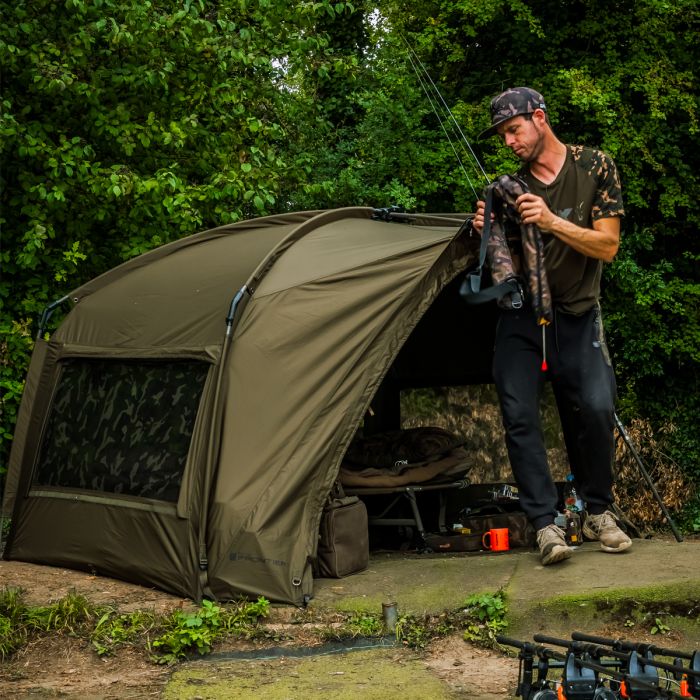 Wij introduceren een gloednieuwe reeks Fox bivvies die de viswereld stormenderhand zullen veroveren! De Frontier bivvies zijn de afgelopen 5 jaar zorgvuldig ontwikkeld en geen middel is onbeproefd gelaten om de ultieme bivvy voor sportvissers te produceren. Het unieke Easy Tension System (ETS) Boss, waarvoor patent is aangevraagd, biedt een supersnelle opbouw en afbraak, terwijl de verbeterde vorm van het aluminium frame ervoor zorgt dat je meer bruikbare ruimte en hoofdruimte hebt dan ooit tevoren bij bivvies van dit type. Gebruik makend van de altijd betrouwbare Ven-Tec stof en gestyled in Khaki met Camo mesh ventilatieopeningen zijn deze bivvies ongelooflijk betrouwbaar en zien er echt uit als een huis. Zie hierboven voor alle kenmerken en specificaties.