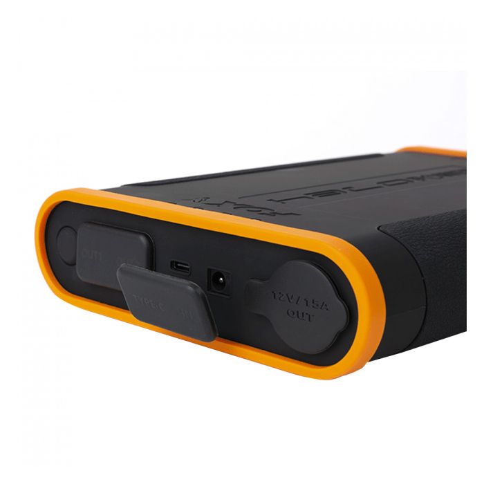 Perfecte stroomvoorziening aan de oever voor het opladen van diverse elektrische apparaten. Capaciteit: 153.6Wh / 13Ah @12V/48000mAh @3.2V. Aanstekercontactdoos Output: 12V 13A max. Aansluitingen: Dubbele USB, USB-C.