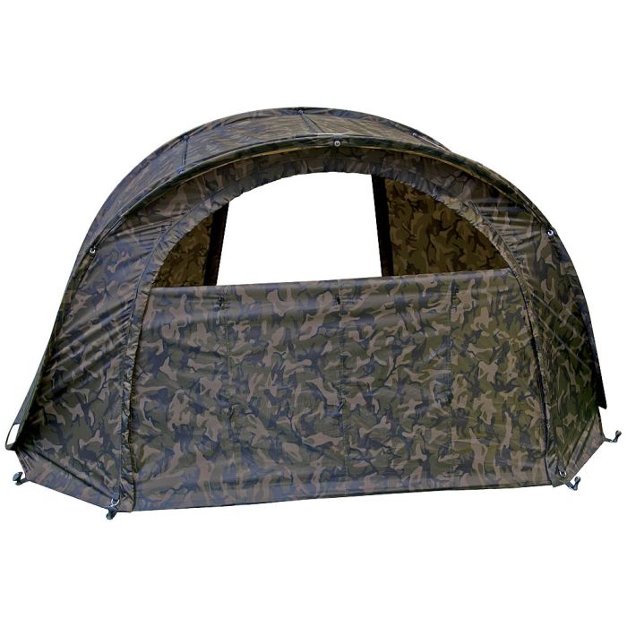Het volledige paneel aan de voorkant van de Fox Makkelijke Schuilplaats Camo kan worden verwijderen. Door dit te doen heb je de ideale schuilplaats voor korte dagsessies of korte nachtjes. De stormkanten kunnen met haringen worden vastgezet, zodat de schuilplaats stevig blijft staan. De tent heeft een footprint van 230cm x 130cm. Dit is compact genoeg om zelfs de kleinste stekken te kunnen bevissen, en de camo afwerking van de tent zorgt ervoor dat je helemaal opgaat in de opgeving. De footprint is tevens groot genoeg om goed te passen over de meeste standaard formaten stretchers.