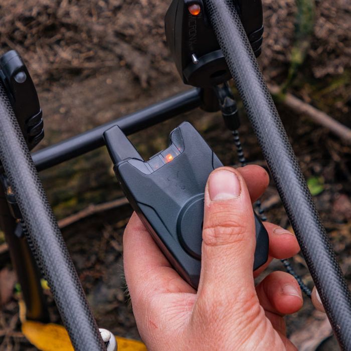 Twee 5 mm High Vis Multi gekleurde LED's: Groen, blauw, rood en oranje. Kleur van de beetmelder kan worden geselecteerd door de volumeknop ingedrukt te houden en op de gevoeligheidsknop te drukken om te veranderen. Instelbare LED helderheid, LED's aangepast door de volumeknop ingedrukt te houden en op de toonknop te drukken. D-Tec Sensing Systeem/Roller wiel technologie voor een duidelijke, consistente bijtendetectie.